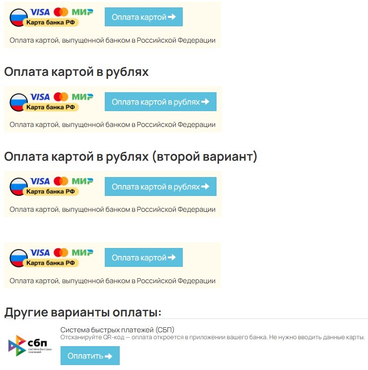 Остальные варианты для карт банков из РФ и систему СБП.