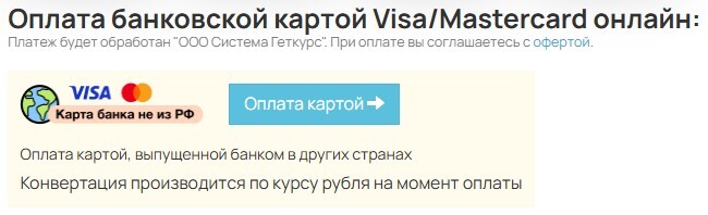 Второй вариант для карт банков не из РФ - оплата происходит в рублях по текущему курсу на дату оплаты.
